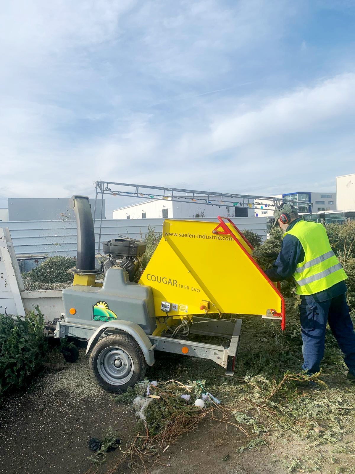 Les arbres sont ensuite récupérés pour être broyés par les agents des espaces verts de la ville. Ce broyat a ensuite été distribué gratuitement aux véliziens.