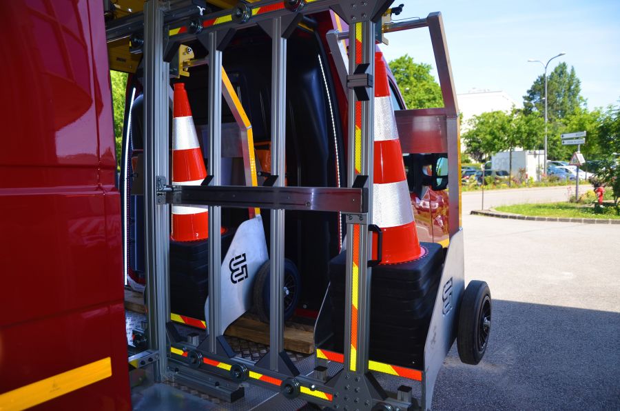 Cet engin d'intervention d'urgence est équipé d'un Système d'Alerte des Personnes en Intervention (SAPI). Un écran tactile permet de déterminer la zone à sécuriser en suivant la trajectoire des cônes de signalisation positionnés au préalable. Une caméra motorisée, installée à l'arrière du véhicule, traite les images en temps réel. Dès lors qu'un véhicule entre dans la zone d’exclusion une alerte par corne de brume est lancée pour avertir le personnel en action. Cette particularité innovante fonctionne par tous les temps, de jour comme de nuit. Explications détaillées en vidéo ici.