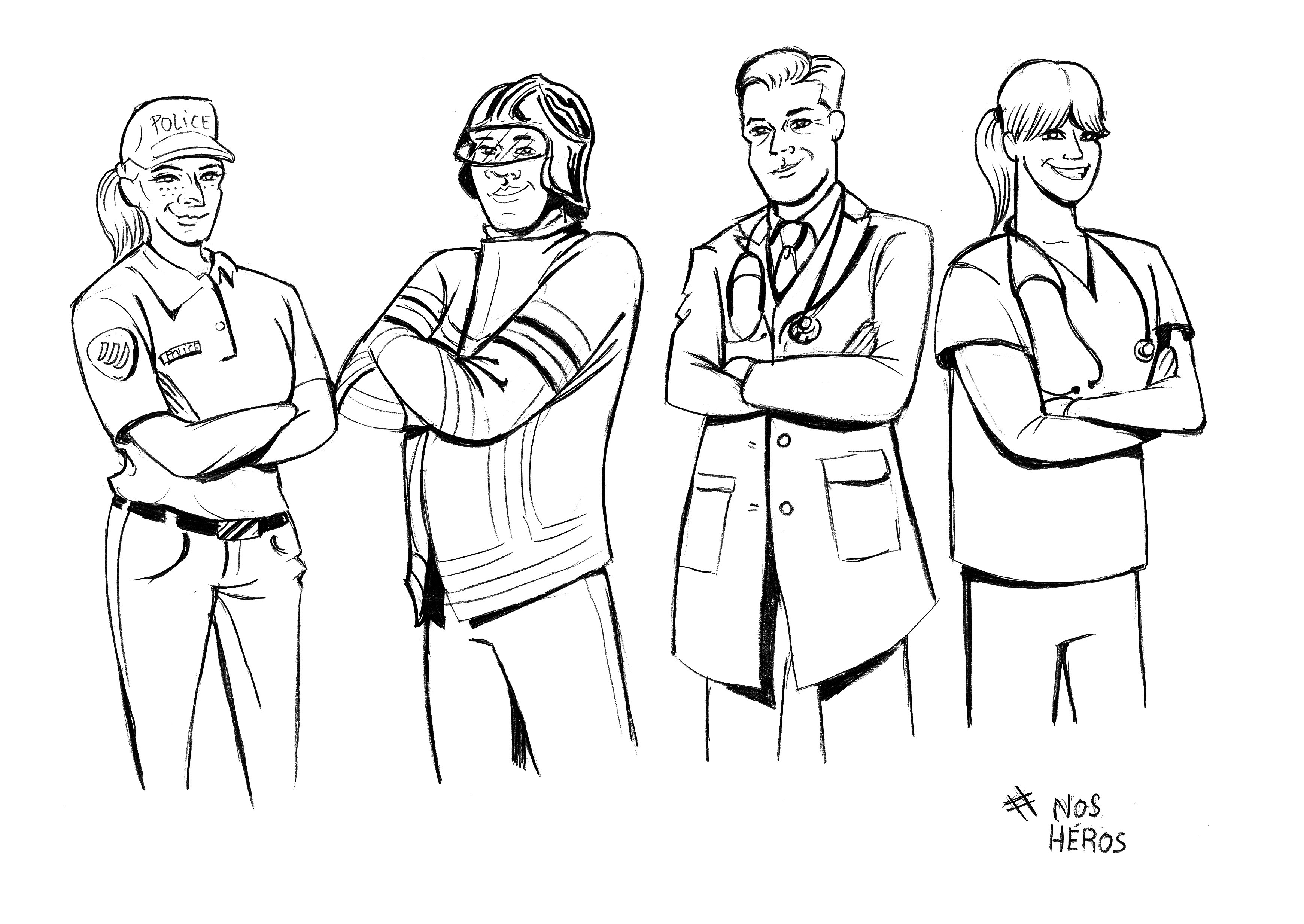 Eboueur, caissier, pompier, infirmier, maître d'école... autant de métier qui rendre notre quotidien plus aisé. Montrez leur votre soutien en coloriant ces planches de dessin !